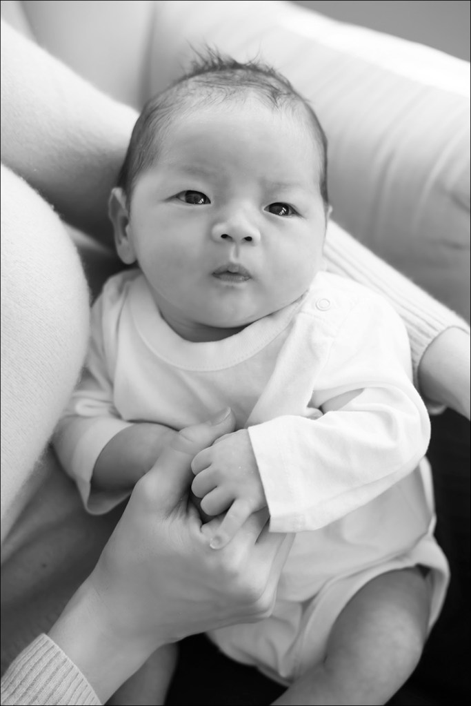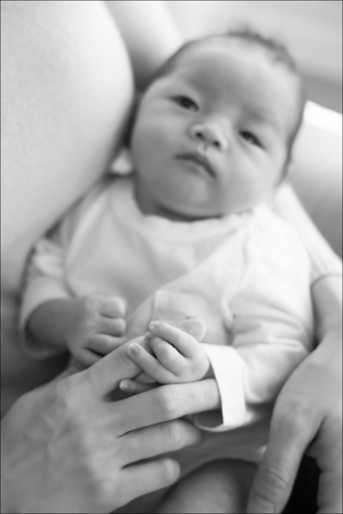 His fingers are surprisingly long for a newborn. Seems like he’s inherited Mom and Dad’s lean physique.